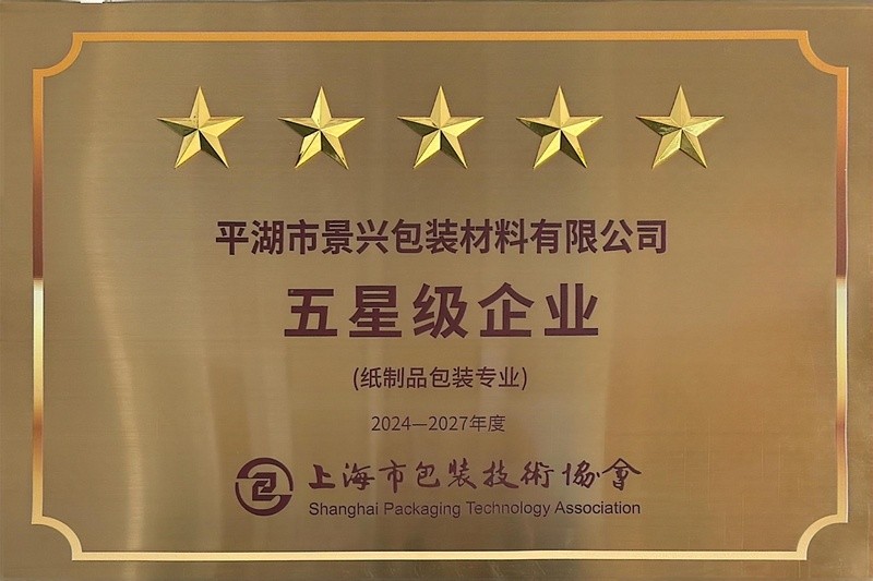 喜報(bào)!景興紙業(yè)全資子公司平湖景包被上海市包裝技術(shù)協(xié)會(huì)授予紙制品包裝專業(yè)“五星級企業(yè)”榮譽(yù)稱號